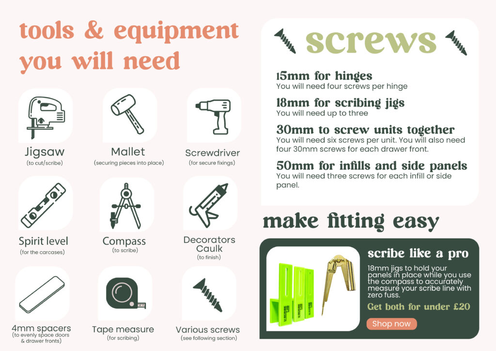 Having the right tools on hand makes construction much easier. Essential tools for your DIY fitted wardrobe include: