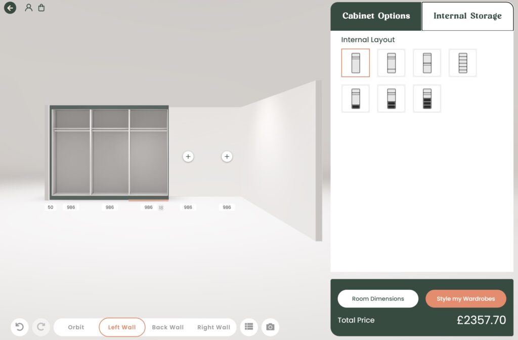 A well-thought-out layout ensures your wardrobe is as practical as it is stylish. In the first stage of the tool you can select your cabinet types and what internals you want.
